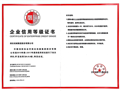 11月30日,綠友集團被中國消防協會評定為AAA信用等級企業。