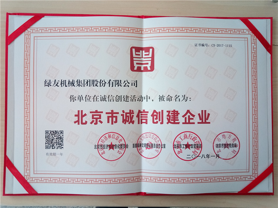 1月,綠友集團通過復審,獲得“北京市誠信創建企業”證書。