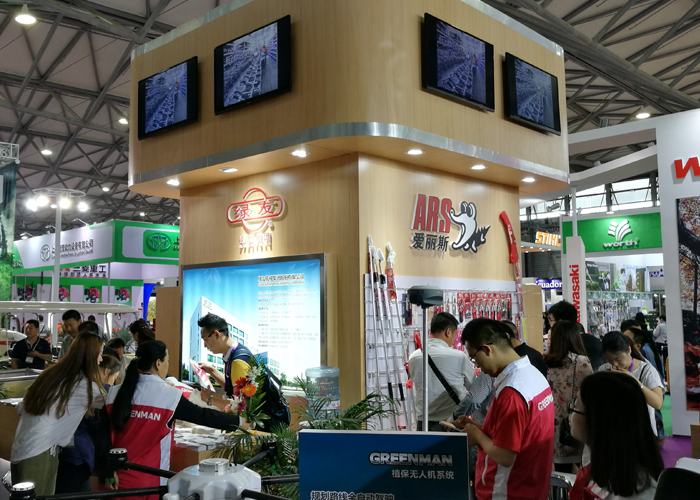 設(shè)備展示區(qū)更是吸引了眾多專業(yè)觀眾的眼光,綠友集團(tuán)展示了自主研發(fā)、生產(chǎn)以及代理的剪草機(jī)、打藥機(jī)、灌溉系統(tǒng)、冷霧系統(tǒng)、電動車輛、粉碎機(jī)、無人機(jī)、園藝工具、植保用品等十多種產(chǎn)品。期間,綠友集團(tuán)展位上一直人潮涌動,自產(chǎn)設(shè)備引來諸多關(guān)注。有問粉碎機(jī)的,有了解大型零轉(zhuǎn)彎剪草機(jī)的,有被冷霧系統(tǒng)所吸引的,有圍觀無人機(jī)的,更有很多觀眾現(xiàn)場購買愛麗斯園藝工具。綠友工作人員不知疲倦地解答著各種各樣的問題,也收獲了大量訂單。