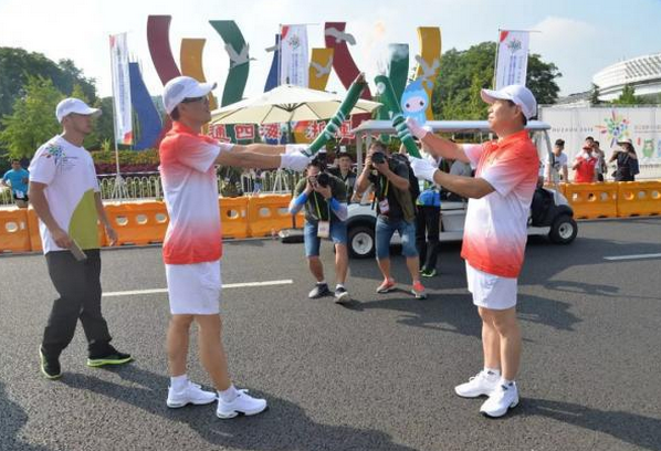 8月8日上午,浙江省第十六屆運動會火種匯聚·火炬傳遞暨2018年浙江省全民健身日主會場活動啟動儀式在湖州市民廣場舉行。