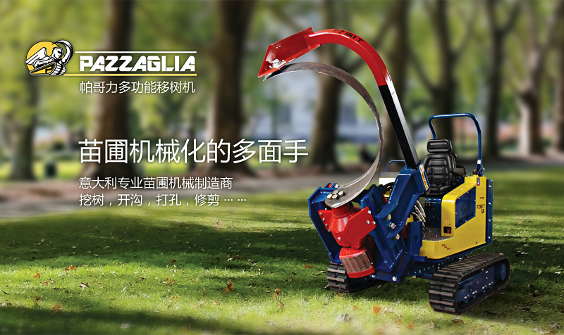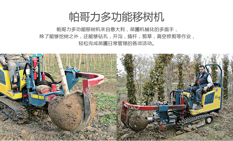來自意大利的帕哥力多功能移樹機,是苗圃機械化的多面手,除了能夠挖樹之外,還能夠鉆孔,開溝